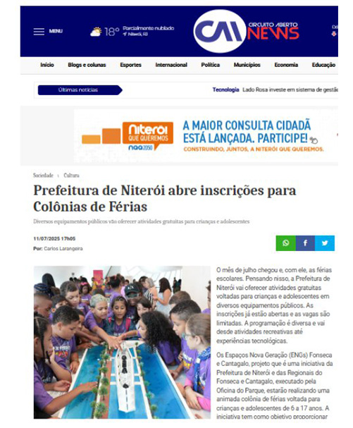 Colônia de férias do ENG no jornal O Dia